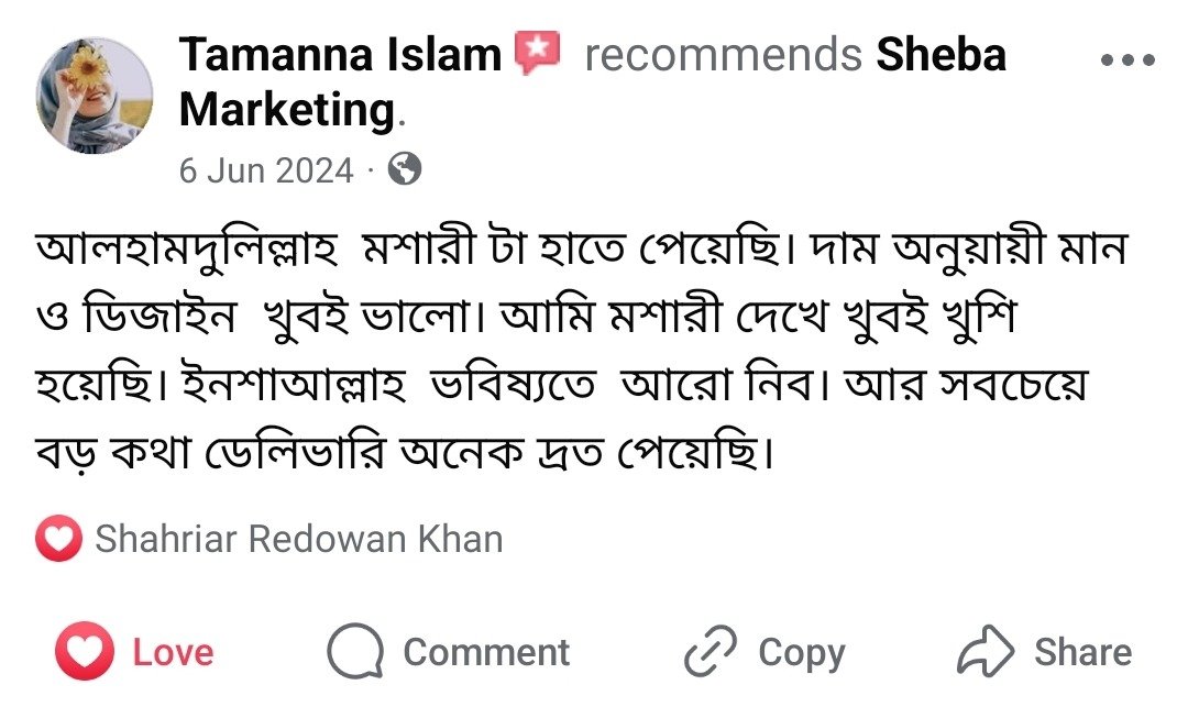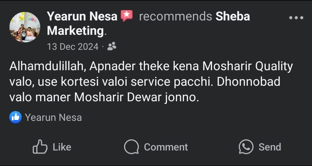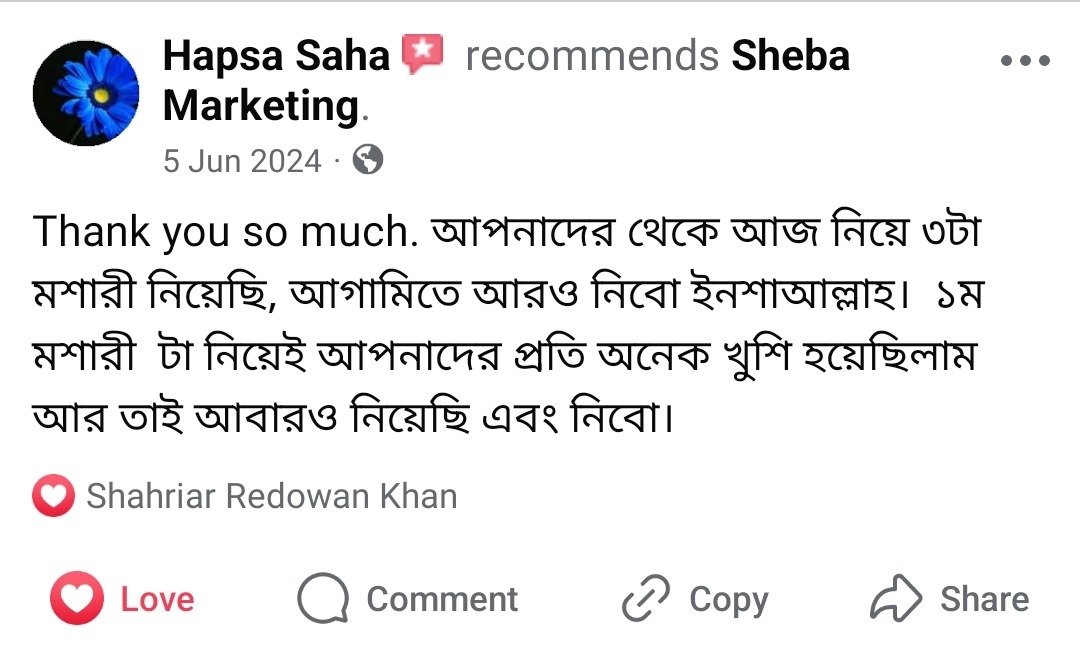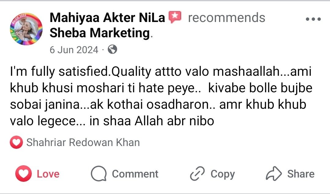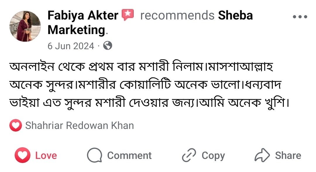 ১০০% কোয়ালিটি সম্পন্ন প্রডাক্ট হওয়ায় দীর্ঘ মেয়াদি টিকসই